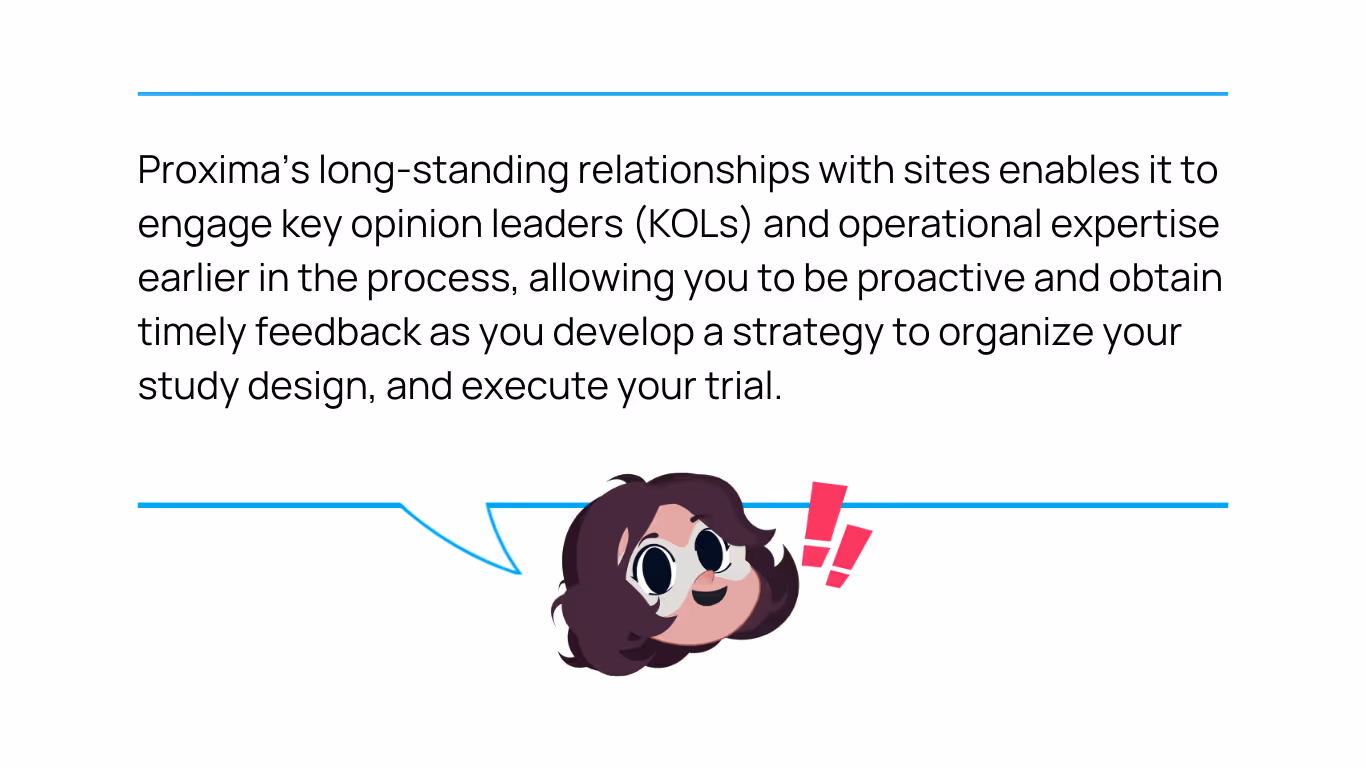 The patient journey is also influenced by choosing an experienced CRO, who will assist you in determining the most suitable sites to carry out the research for you with a patient-centric approach, directly enhancing the overall clinical trial participation experience. As a biotech sponsor, it is vital that you select a CRO with the right capabilities, relationships, and connections in oncology pertinent to your unique study requirements. Proxima, for example, can help you with early site engagement with KOLs (key opinion leaders) in our oncology network. A strong CRO, such as Proxima, comes with a qualified leadership team that can leverage partnerships and helps influence the strategy, patient experience, and finalization of your oncology clinical trial.